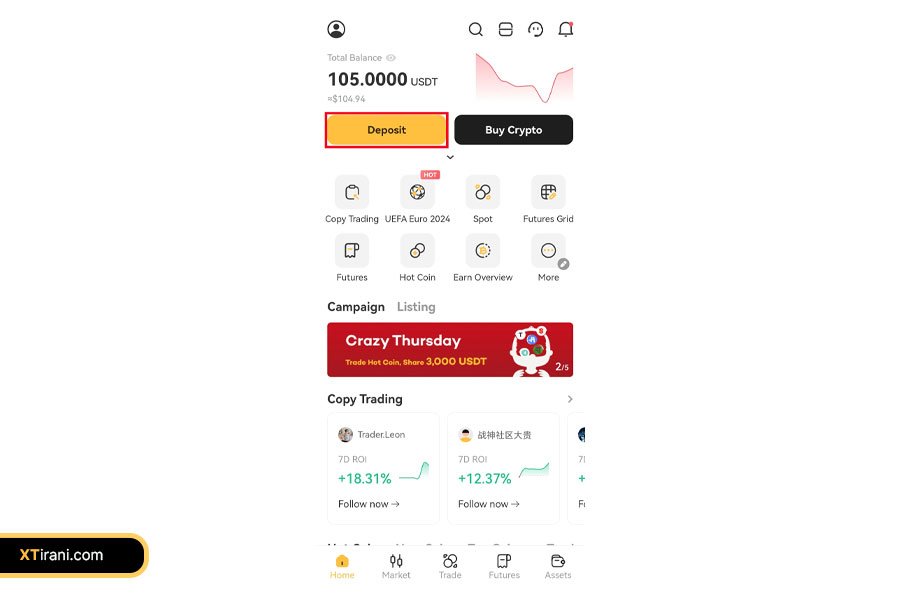 واریز از طریق اپلیکیشن صرافی XT