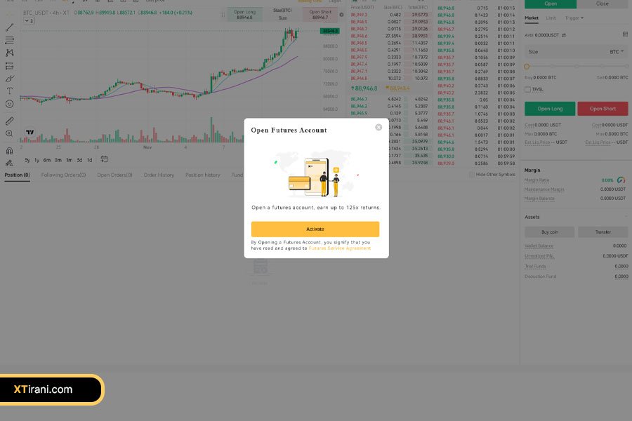 برای انجام معاملات فیوچرز در صرافی XT، ابتدا باید حساب فیوچرز خود را فعال کنید و مراحل زیر را طی کنید:
